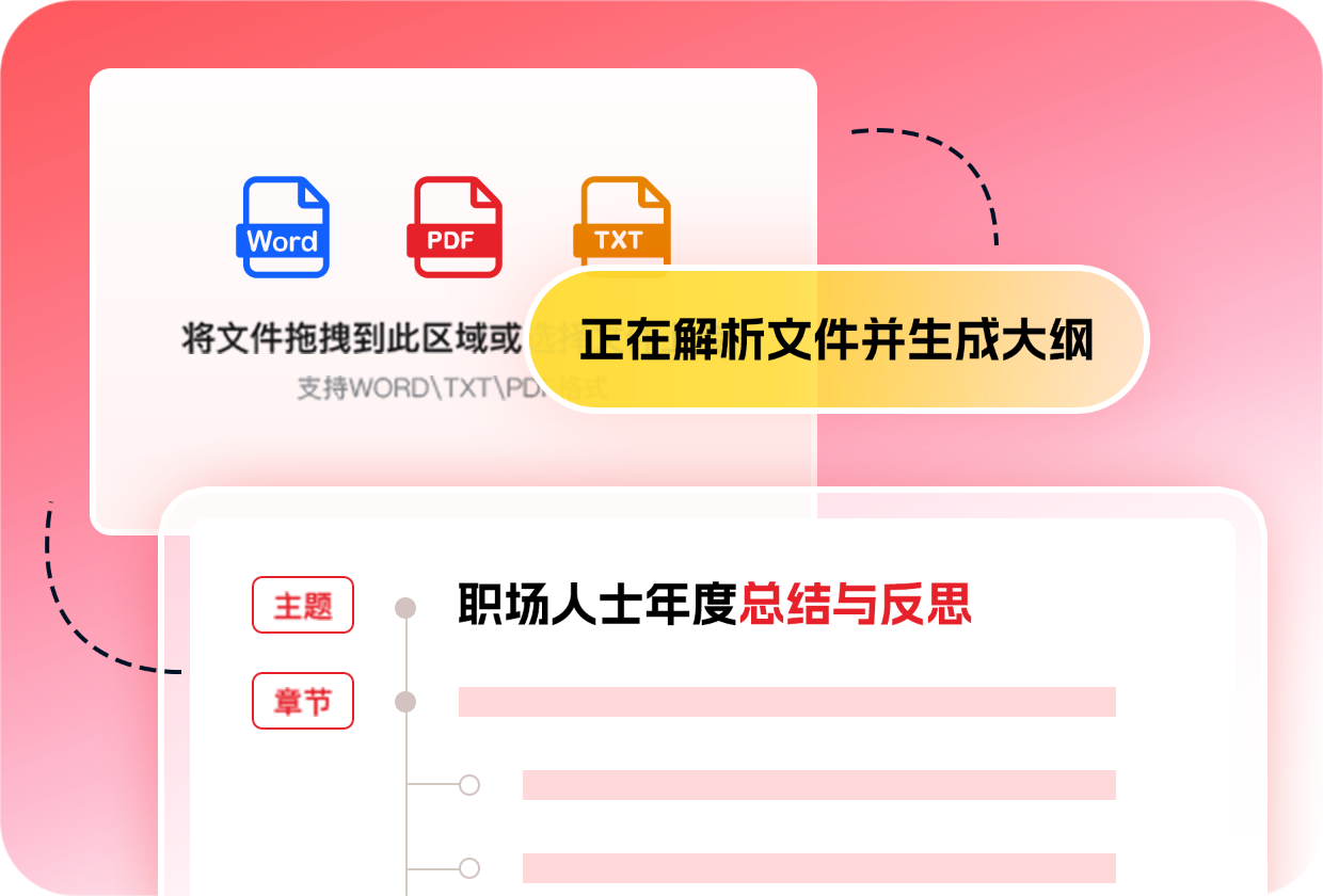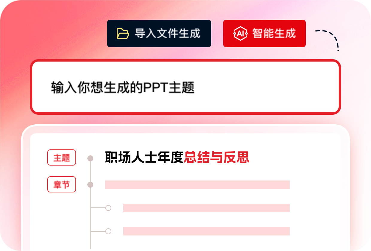 导入文件,PPT自动生成。Word、PDF、TXT等文档一键转为PPT,让 PPT制作极速起飞。